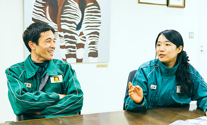 ズーラシアのイベントを担当する、上田佳世さん(右)と有馬一さん(左)(写真=深澤慎平)